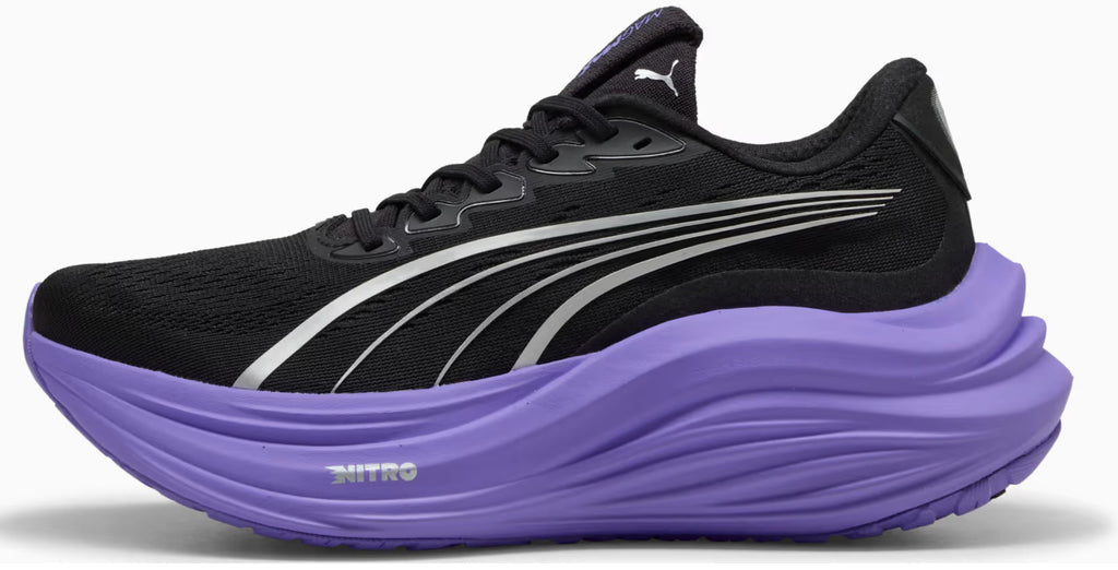 Experience an exhilarating bounce like never before with the MagMax NITRO™. Boasting an impressive amount of cutting-edge NITROFOAM™ technology, these shoes will effortlessly propel you from one mile to the next, filling your stride with excitement and ease. Around the foot you'll find a comfortable mesh, deluxe knitted tongue and cushioned heel. PUMAGRIP protects the precious NITROFOAM™ and provides top-notch traction keeping you steady on your feet.
