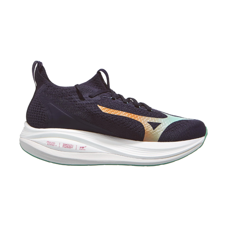 - Smooth Speed Assist: Mizuno's signature geometry that is designed for maximum performance. The significant heel bevel encourages an efficient midfoot landing, the midfoot contact point supports the calf and the aggressive forefoot rocker delivers a smooth and propulsive transition.